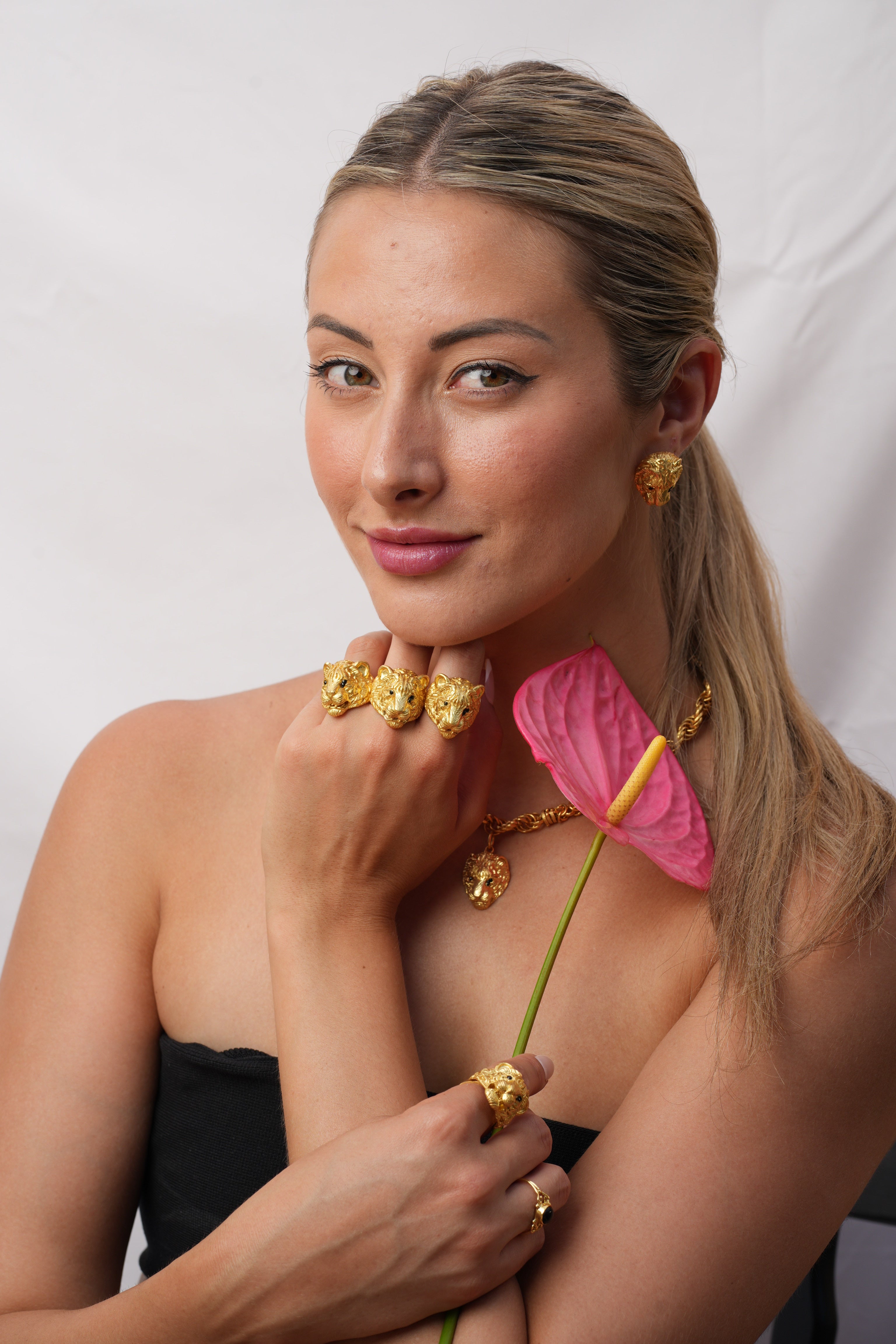 The Huli Collection honors the majestic — and endangered — tiger. Each piece is designed with a teardrop in the tiger’s eye, symbolizing both its strength and its suffering, with only 4,000 left in the wild.